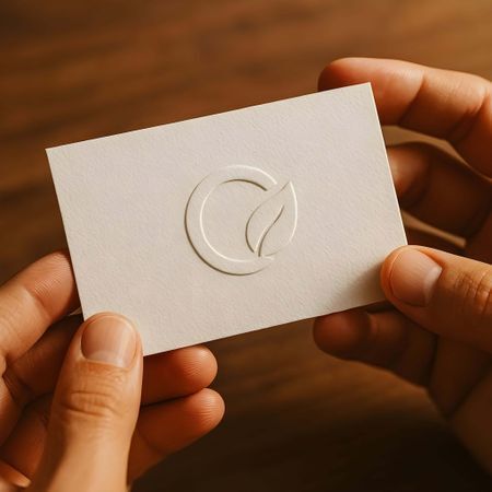 Foil stamping applies a reflective metallic tone to signal luxury and precision. Embossing lifts the surface, adding tactile weight and dimension. Used together, they create a highly elevated, memorable, and premium finish.